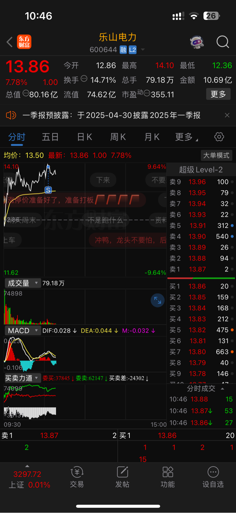 $乐山电力(SH600644)$ 这个位置不卖是啥子
