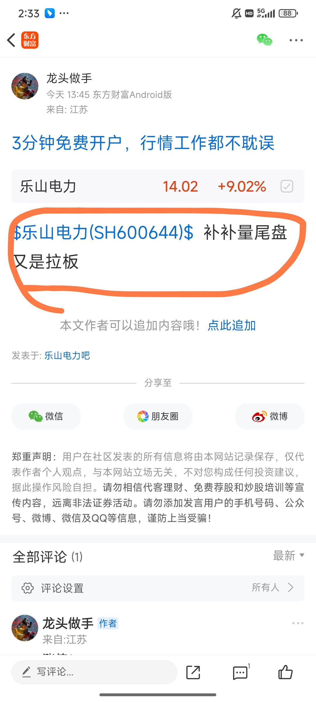 温馨提示: 1.根据《证券法》规定,禁止编造、传播虚假信息或者误导性信息,扰乱证券市场;2.用户在本社区发表的所有资料、言论等仅代表个人观点,与本网站立场无关,不对您构成任何投资建议。用户应基于自己的独立判断,自行决定证券投资并承担相应风险。《东方财富社区管理规定》