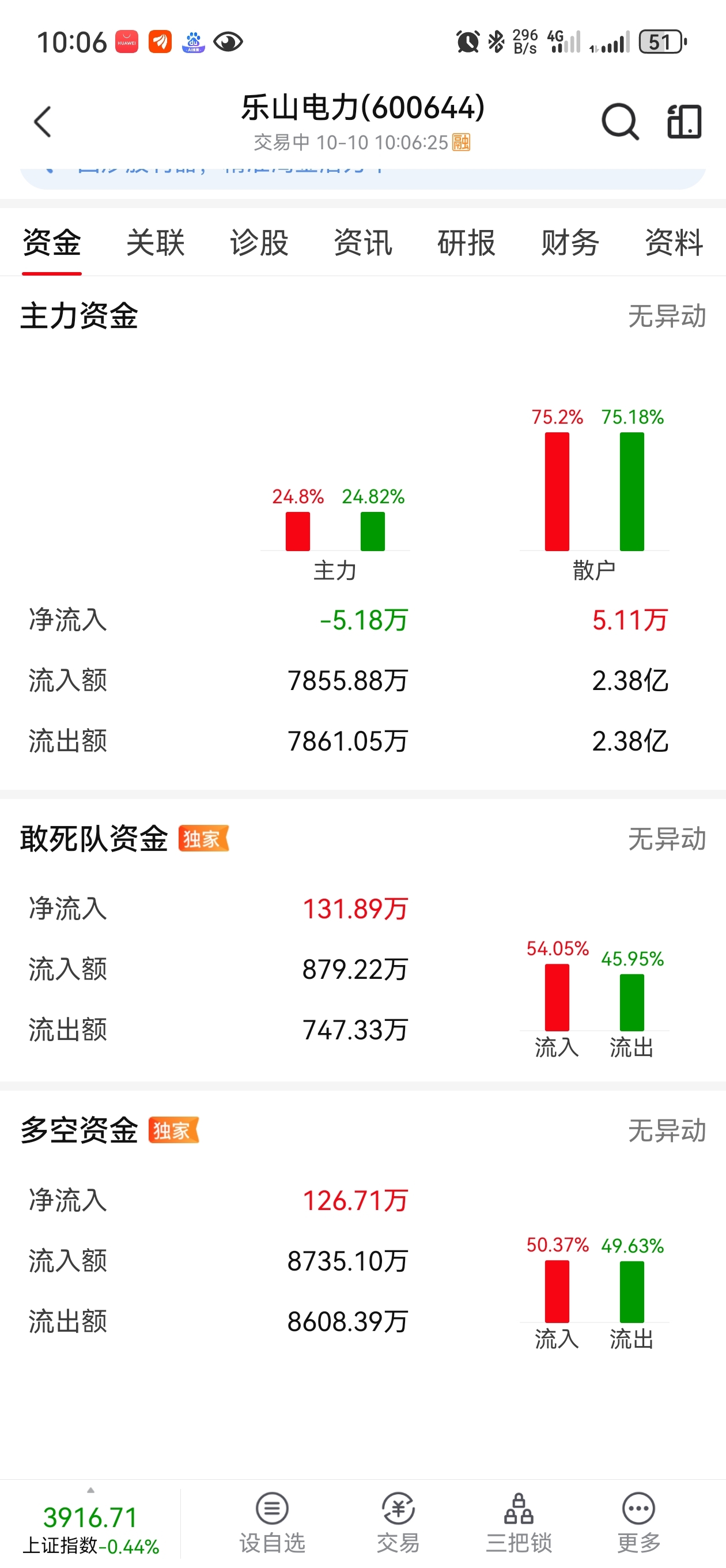 $乐山电力(SH600644)$ 快跑吧,主力和游资用小单多次清仓,你们发现不了的。
