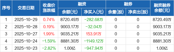 乐山电力:融资净偿还282.68万元,融资余额8720.49万元(10-29)