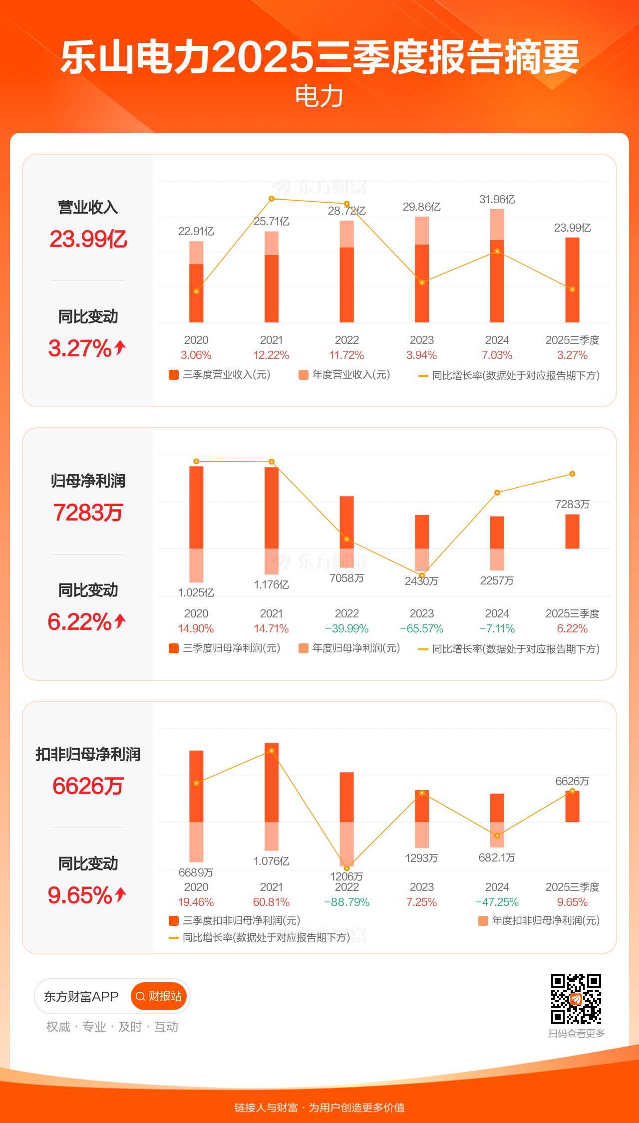 图解财报:乐山电力前三季归母净利润7283.20万元,同比增长6.22%