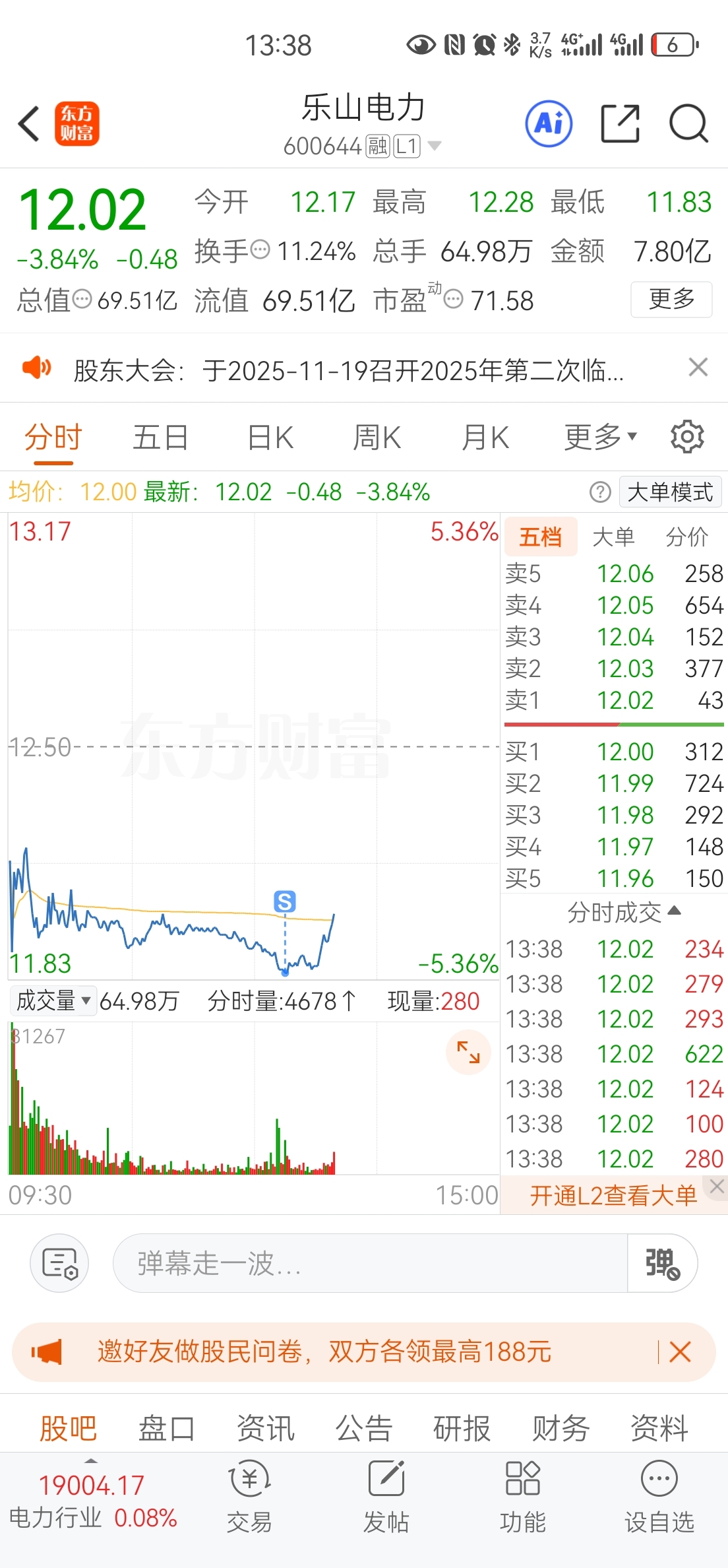 $乐山电力(SH600644)$ 就搞笑,每次都能卖到最低点