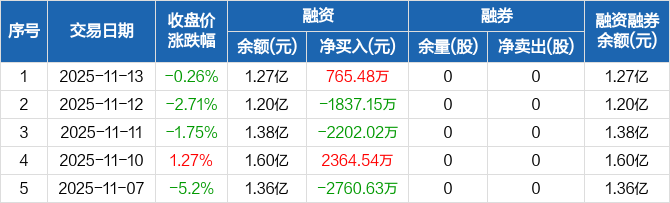 乐山电力:融资净买入765.48万元,融资余额1.27亿元(11-13)