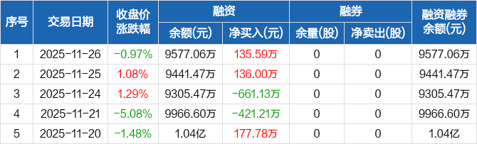 乐山电力:融资净买入135.59万元,融资余额9577.06万元(11-26)