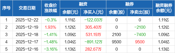 乐山电力:融资净偿还122.03万元,融资余额1.11亿元(12-22)