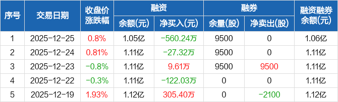 乐山电力:融资净偿还560.24万元,融资余额1.05亿元(12-25)