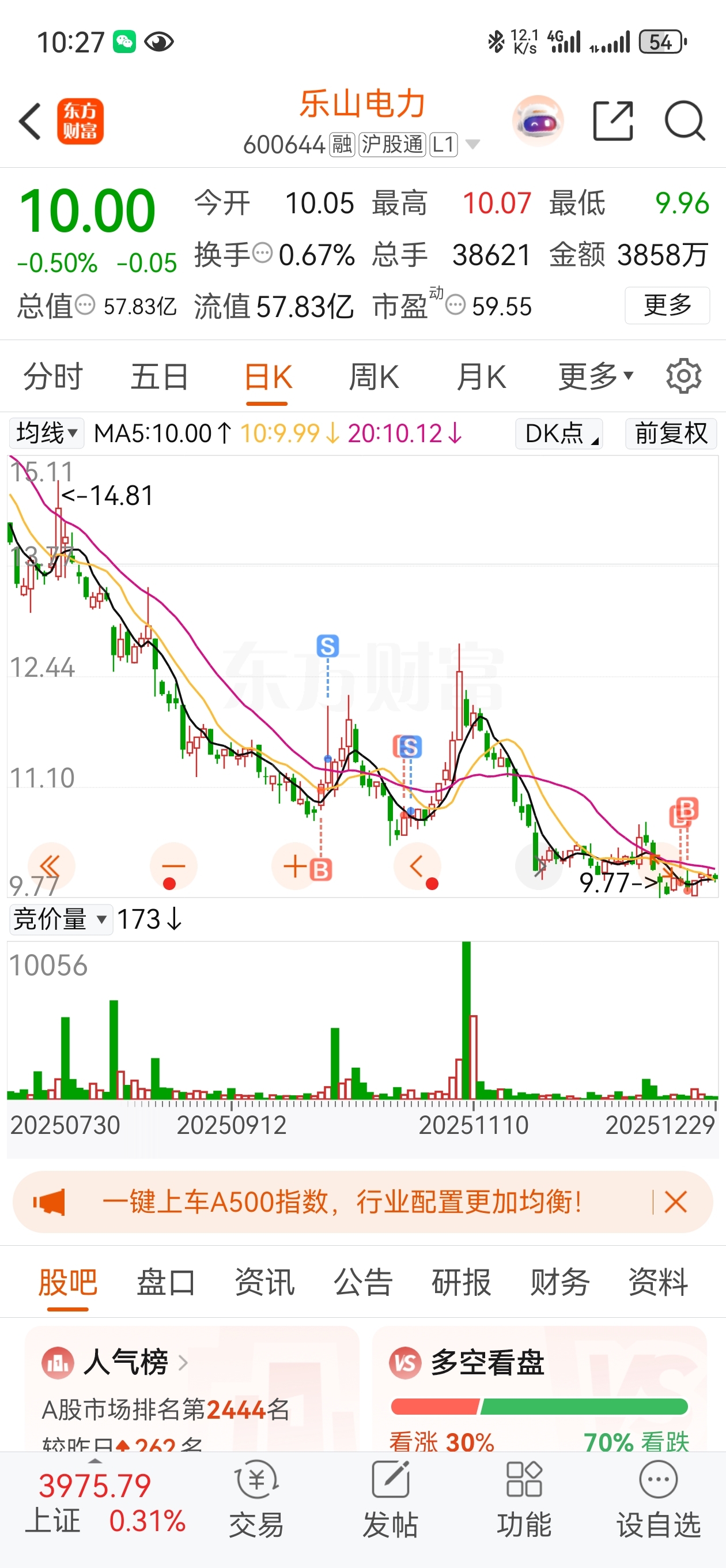 $乐山电力(SH600644)$ 洗吧!我9块8毛6的成本,有本事把我洗掉