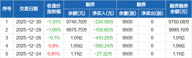 乐山电力:连续5日融资净偿还累计1391.65万元(12-30)