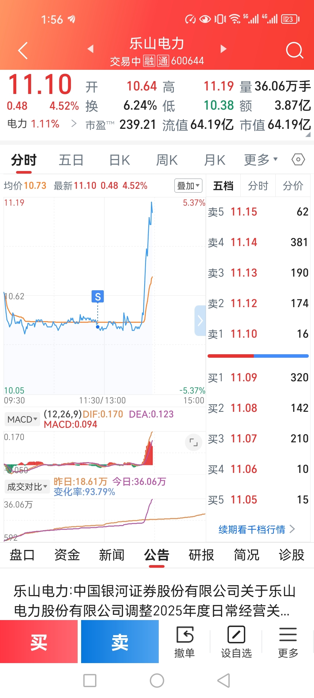 $乐山电力(SH600644)$ 大腿拍断了,外面又亏两个点