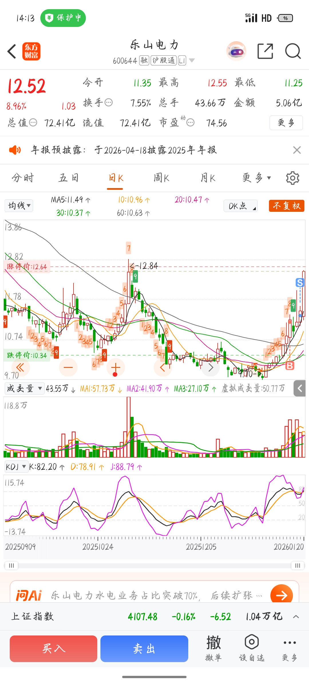 $乐山电力(SH600644)$ 差点让我吃上了。