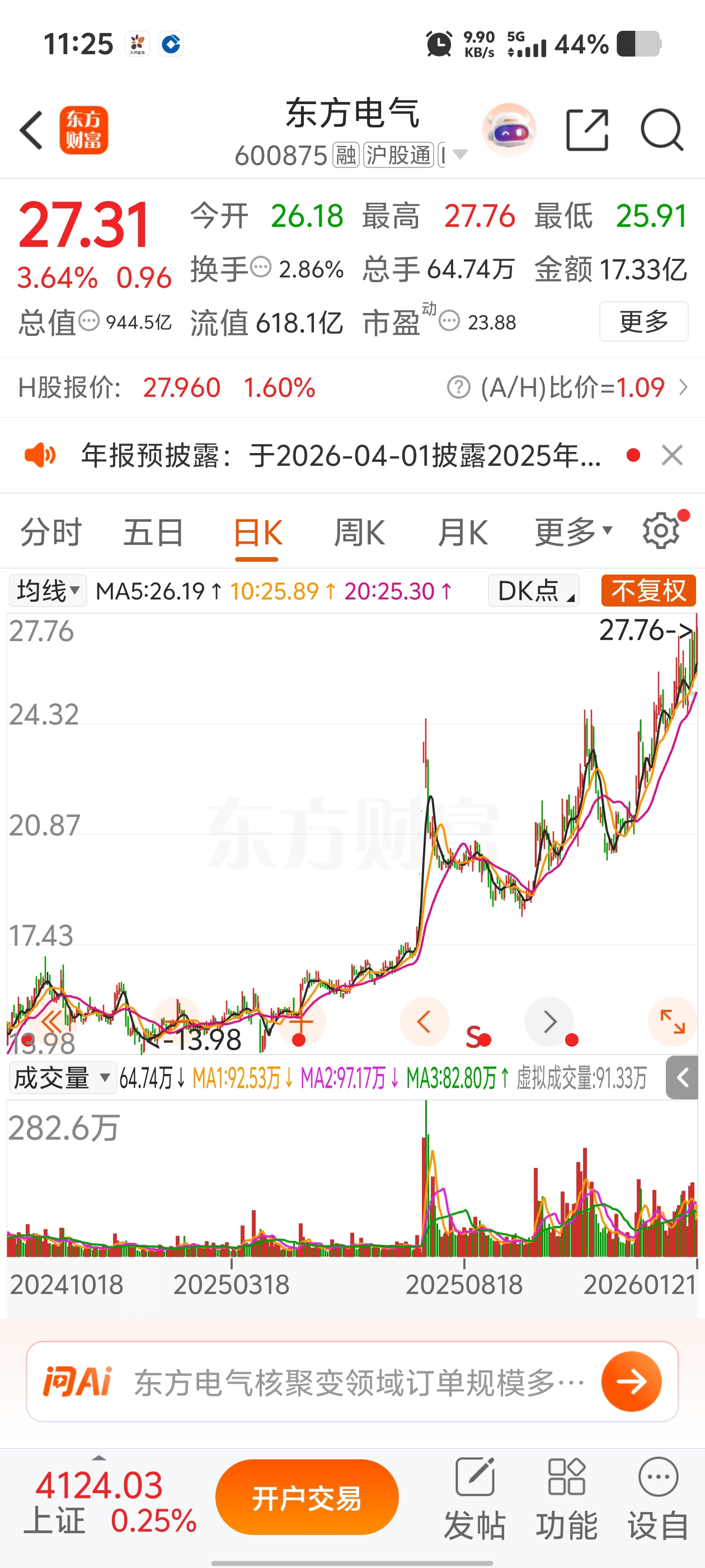 $乐山电力(SH600644)$ 惊喜马上兑现每天都有的,仿照东方电气走势