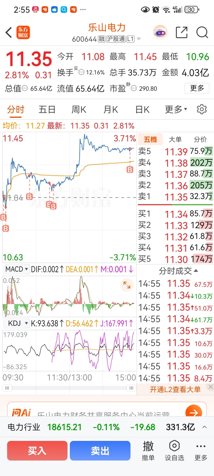$乐山电力(SH600644)$ 调整的差不多了,买几手回家看看是土还是金?