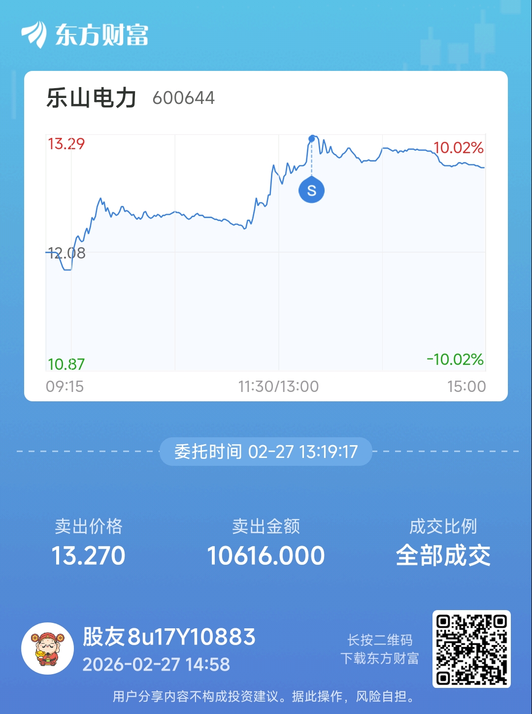 $乐委托标的:买卖方向:笔记:山电力(SH600644)$