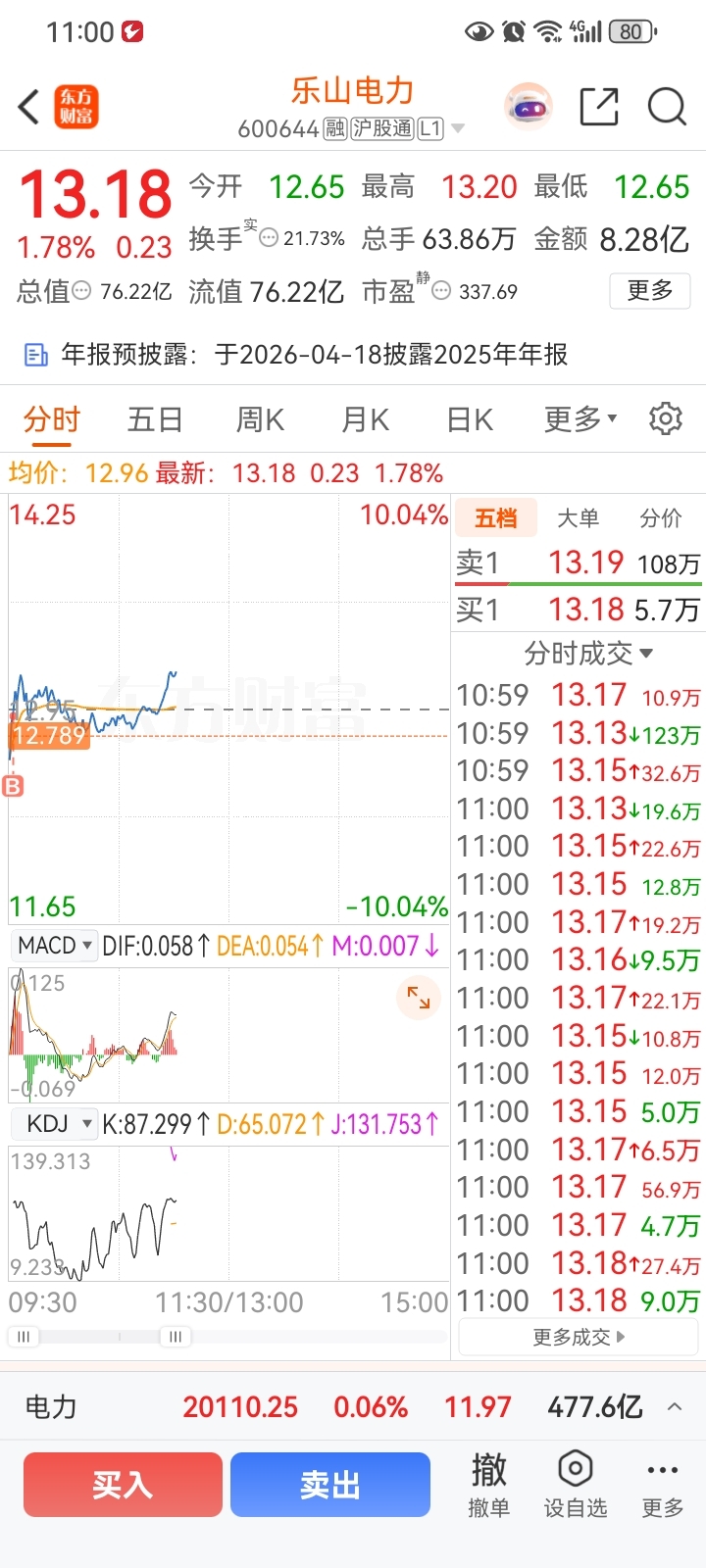 $乐山电力(SH600644)$ 今天在12.91继续增加兵力。今天不做T
