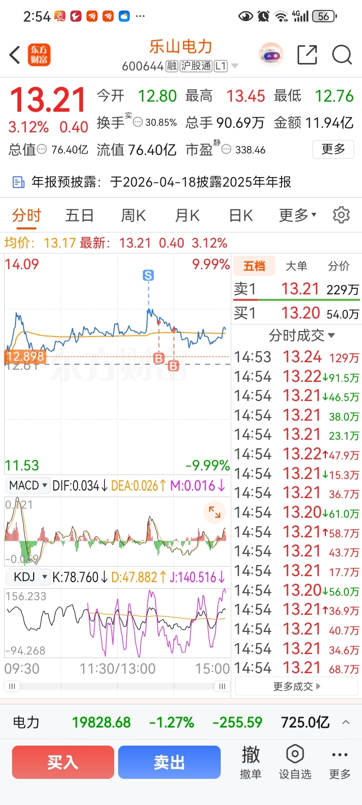 $乐山电力(SH600644)$ 今天做了一个t。还有余额,又买了一点回来。