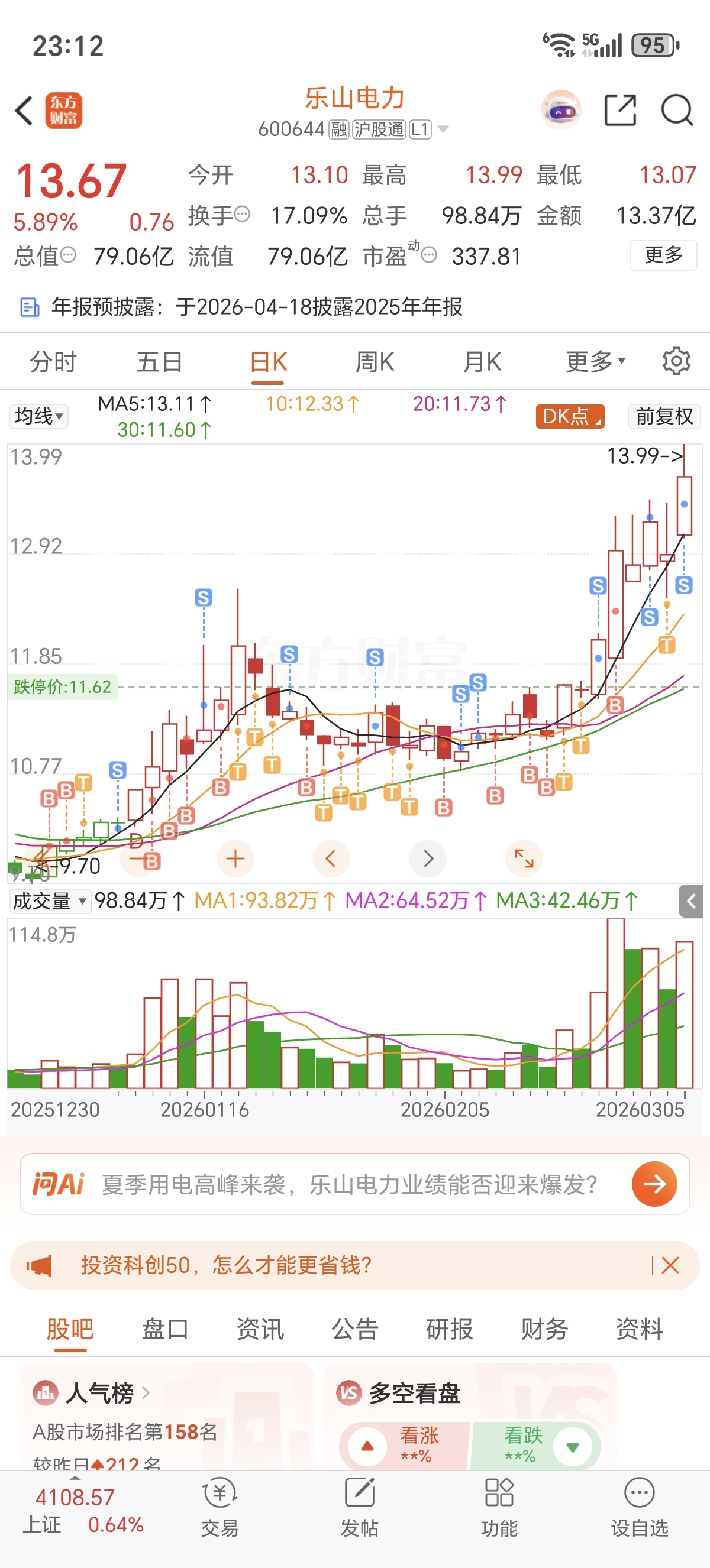 $乐山电力(SH600644)$ 必须陪你到20