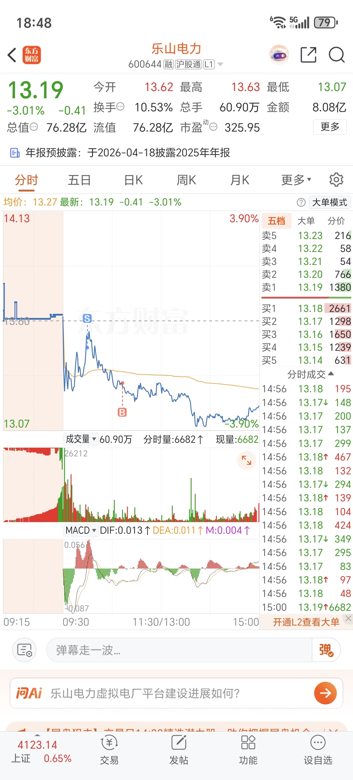 $乐山电力(SH600644)$ 跟6号一样,跌三个点,次日-2开,盘中涨五个点