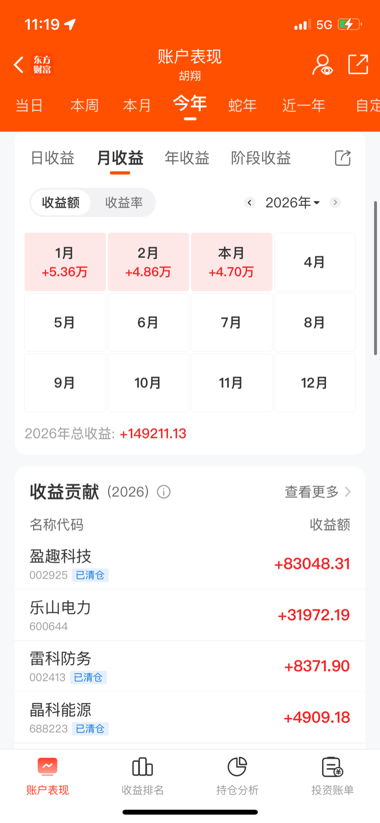 2026以来,小胡已累计盈利15万!