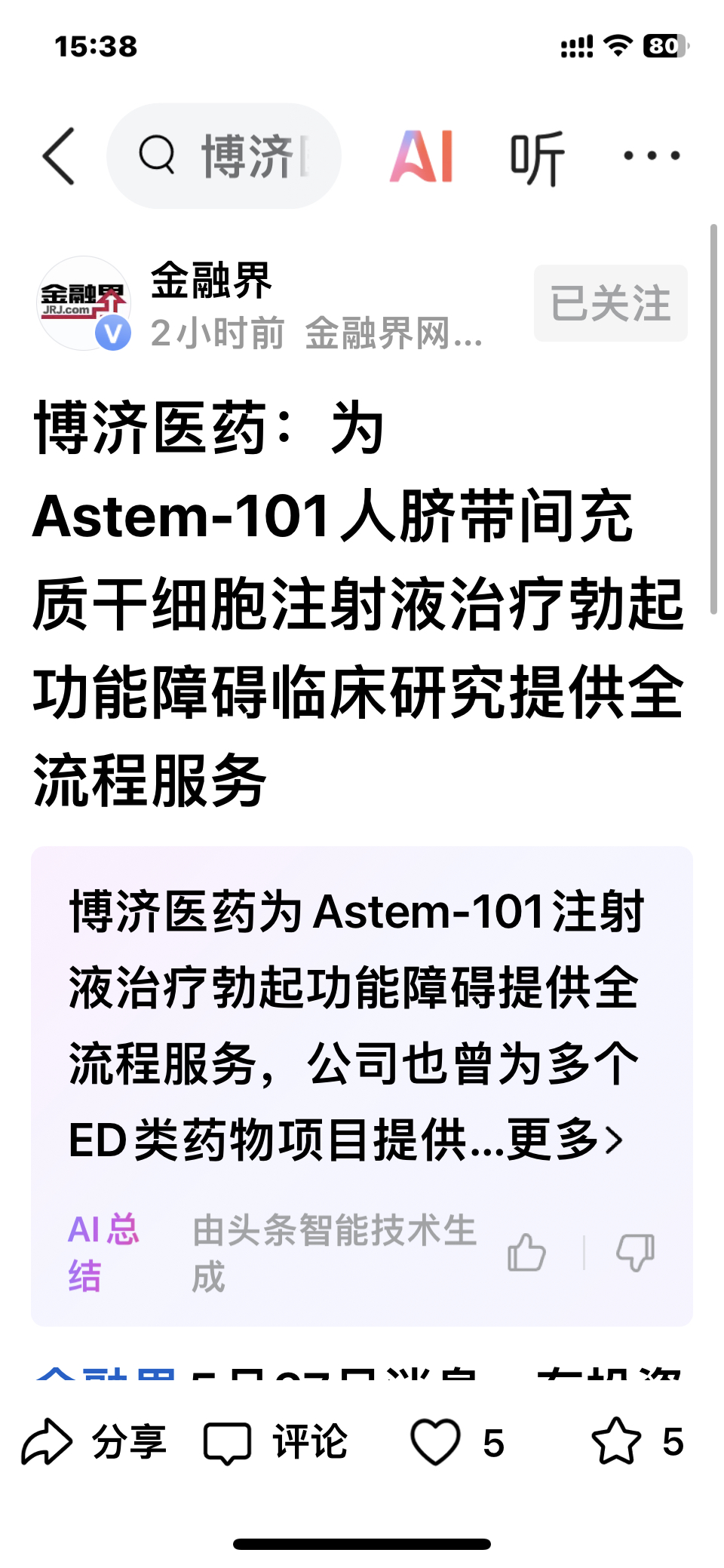 $中源协和(SH600645)$ 干细胞还有伟哥的作用