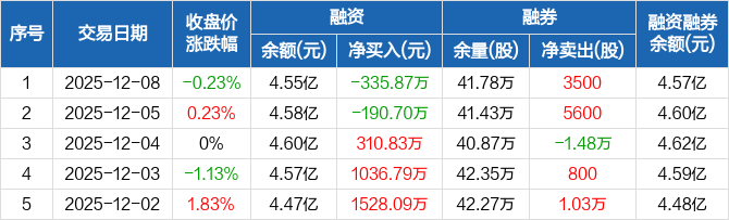 城投控股:融资净偿还335.87万元,融资余额4.55亿元(12-08)