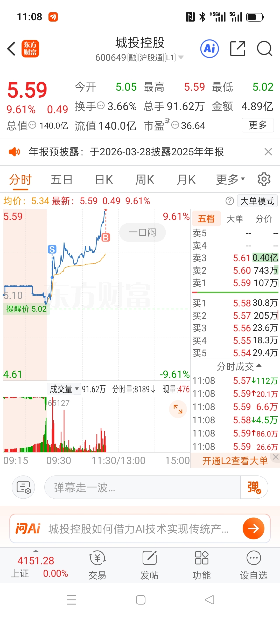 $城投控股(SH600649)$ 今天sb操作了
