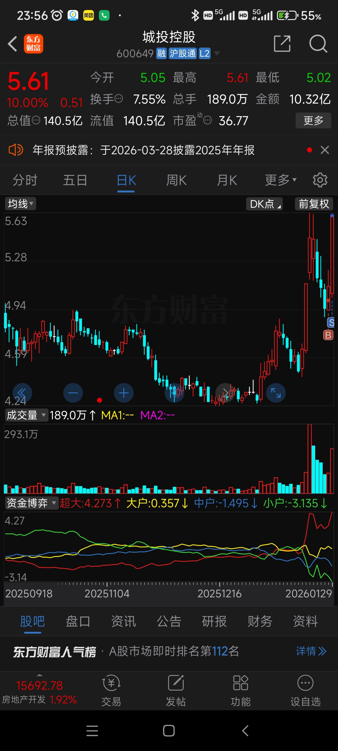 $城投控股(SH600649)$ 各位,我先撤了,留下的发财。