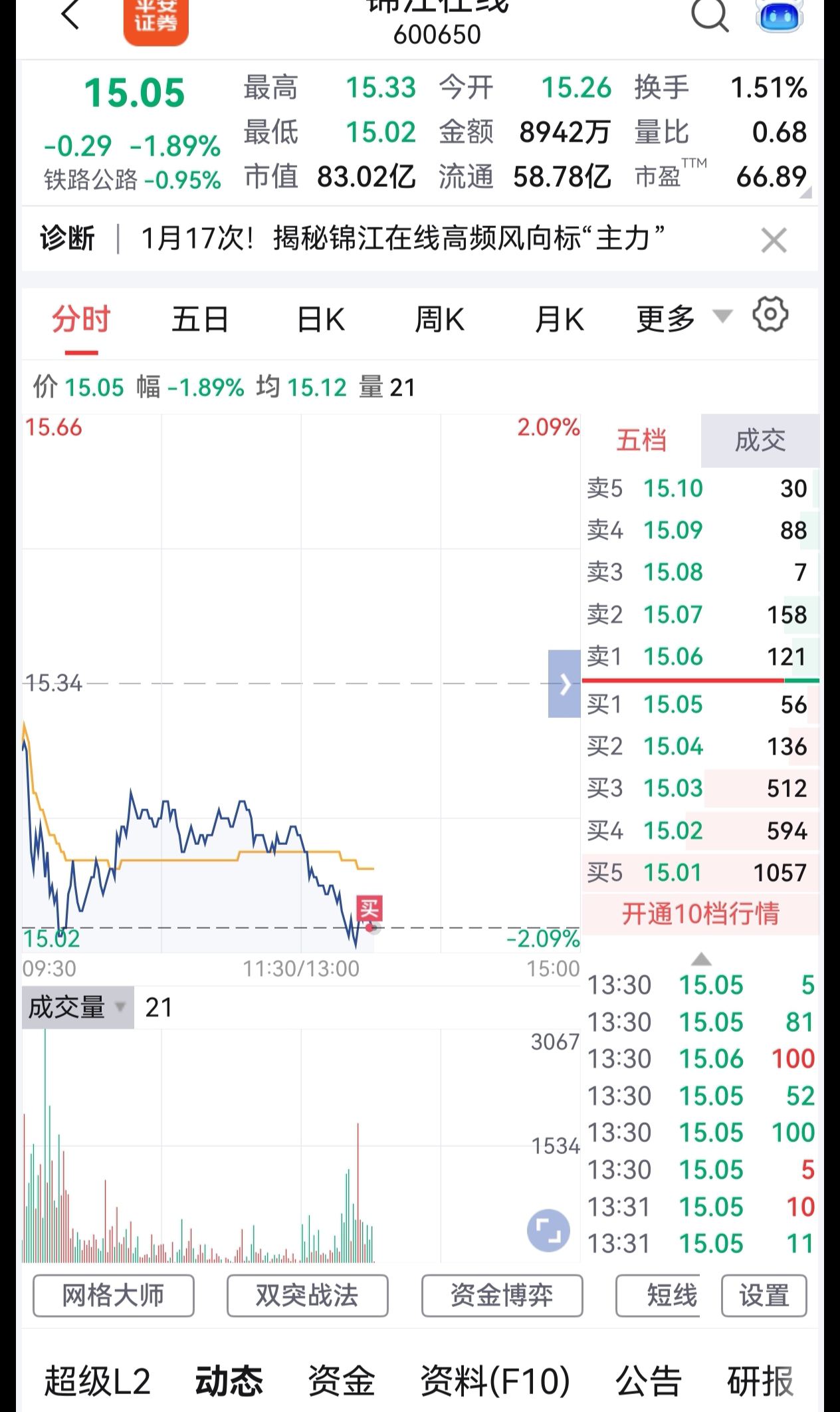 $锦江在线(SH600650)$ 13.05,已进入,坐等明天中阳线