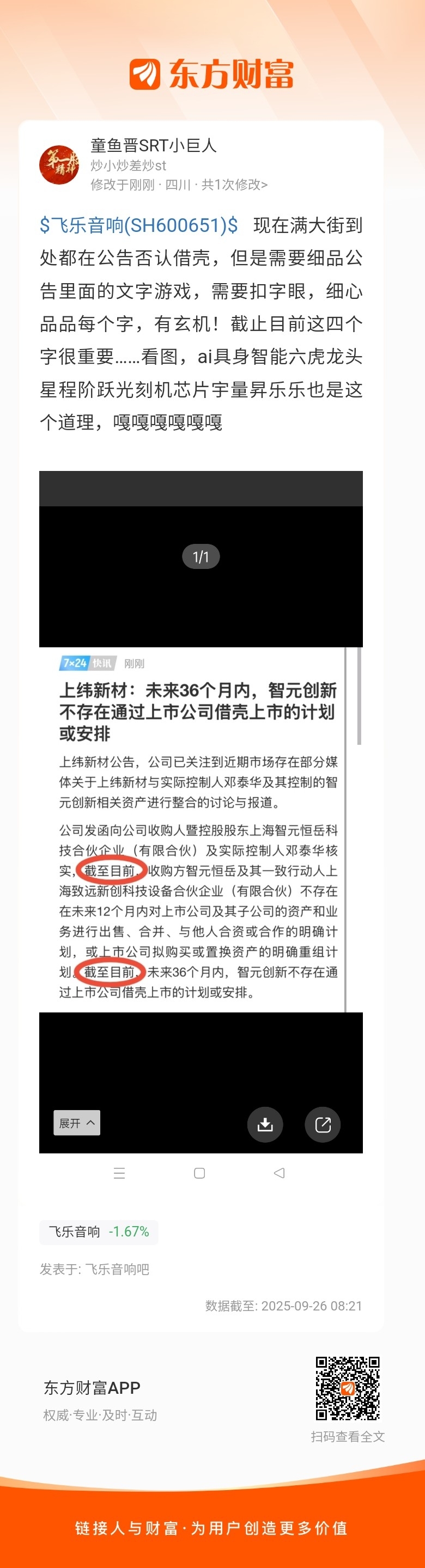 温馨提示: 1.根据《证券法》规定,禁止编造、传播虚假信息或者误导性信息,扰乱证券市场;2.用户在本社区发表的所有资料、言论等仅代表个人观点,与本网站立场无关,不对您构成任何投资建议。用户应基于自己的独立判断,自行决定证券投资并承担相应风险。《东方财富社区管理规定》