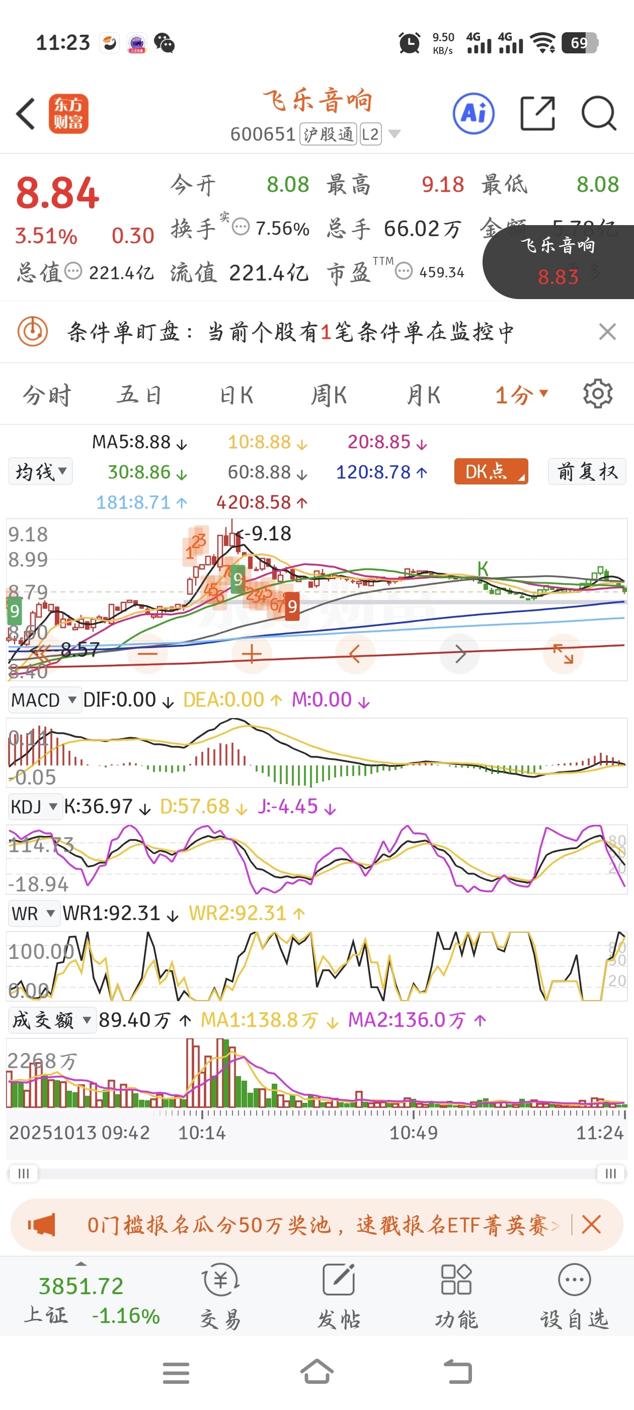 $飞乐音响(SH600651)$ 一分钟缺口不破才好