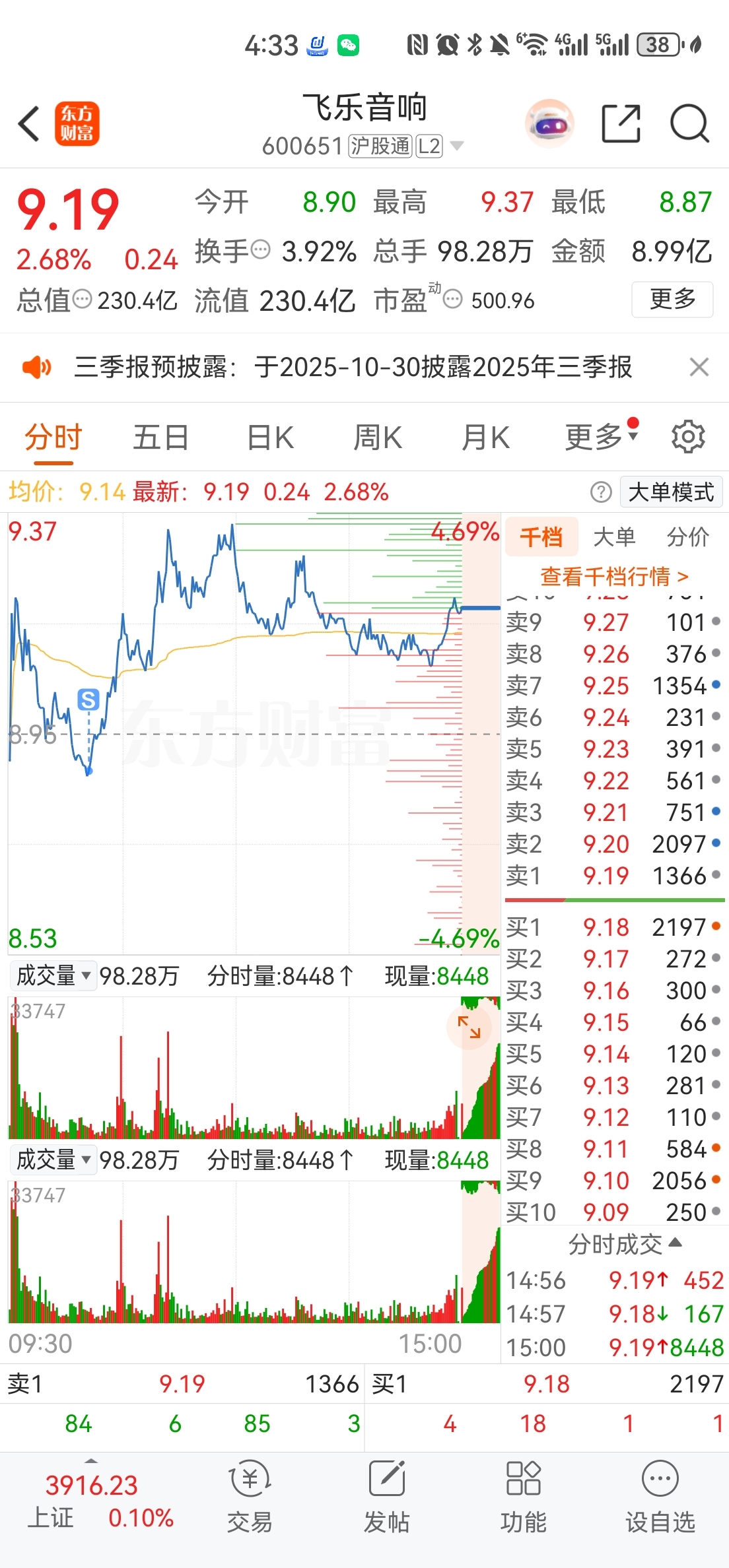 $飞乐音响(SH600651)$ 这操作神了 出去抄底 抄了个深不见底