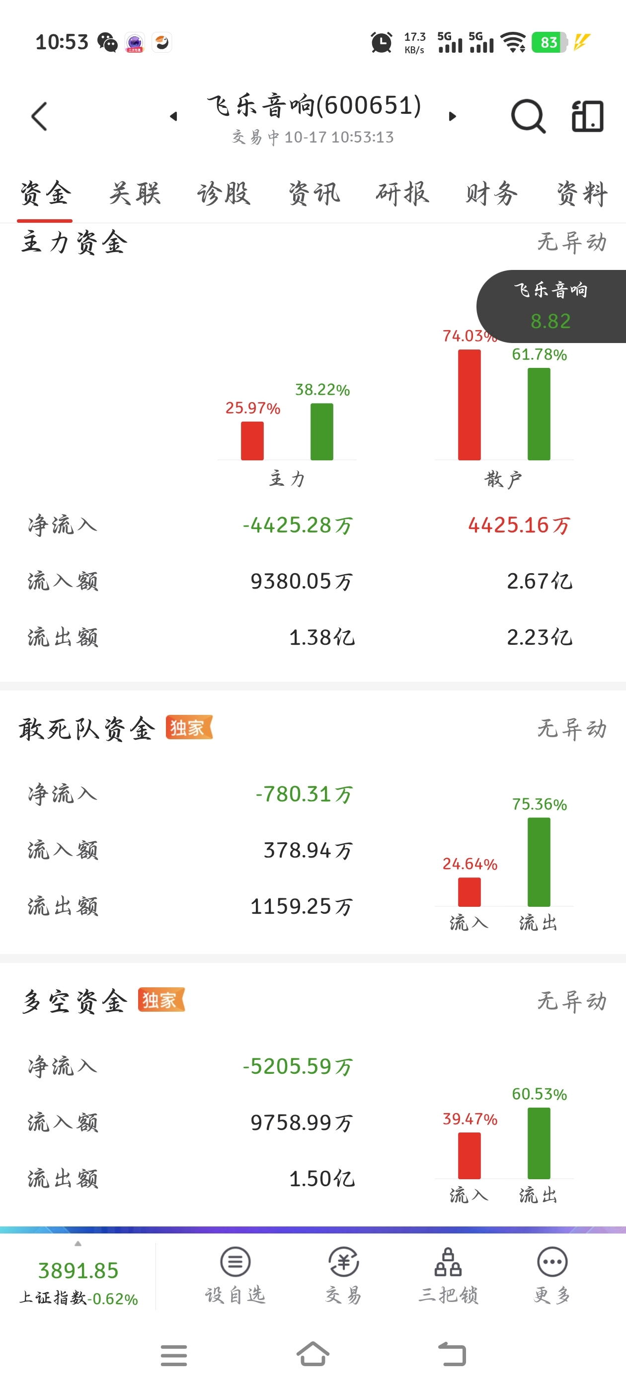 $飞乐音响(SH600651)$ 昨天出了好了,早盘没舍得割,这下好了