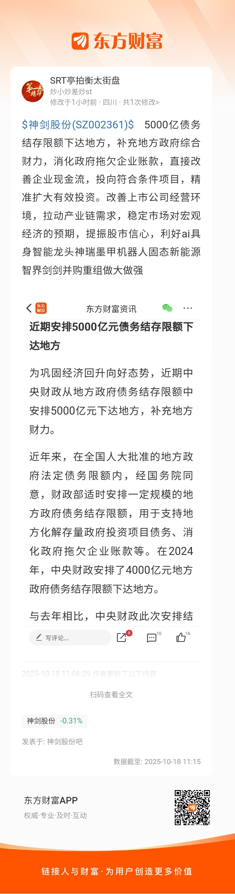 发表于 2025-10-18 11:16:16 东方财富Android版 发布于 四川
