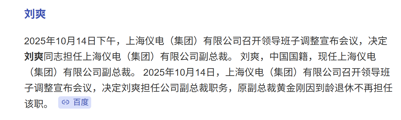 上海电气的刘爽来仪电集团干啥?