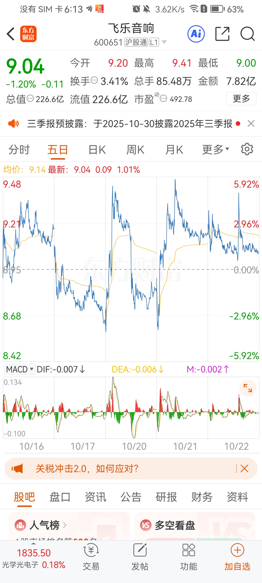 $飞乐音响(SH600651)$ 这股每天做t都有五六个点利润,这样都能挨套也是没谁了,后面感觉要跳水了,立贴为证