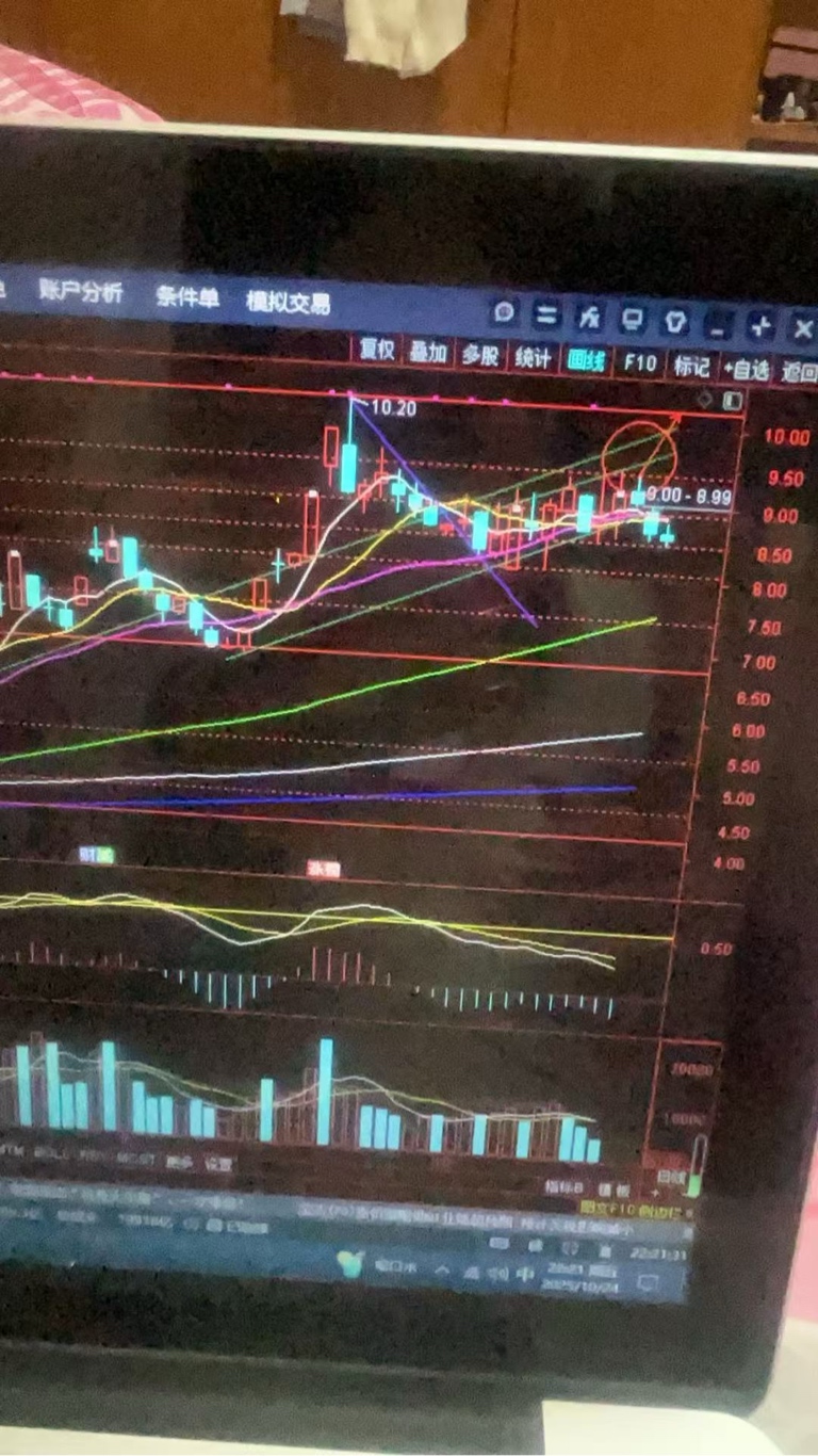 开始压盘,这就是出货,后面一直在边砸边买,现在打在黄金分割线50%,看下周一会不会收十字星,我感觉这段时间会挺刺激的,卸载了