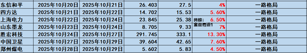 广发证券,中报业绩同比增长48.31%,因为牛市,预期第三季度业绩会加速增长到100%左右。广发属于传统绩优的估值型,走势偏稳,现在券商中它的走势较强势,有大型强势股的盘感,后市有机会走出巨型的主升浪,10月15日分享上车,当天大涨,之后一路回落,上周回踩20日线后止跌反弹,昨天券商终于放量突破底部,广发大涨4%,后市继续看好,持股。