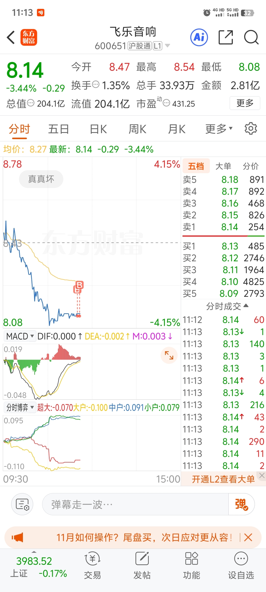 $飞乐音响(SH600651)$ 可以 跌停了 我的宝贝