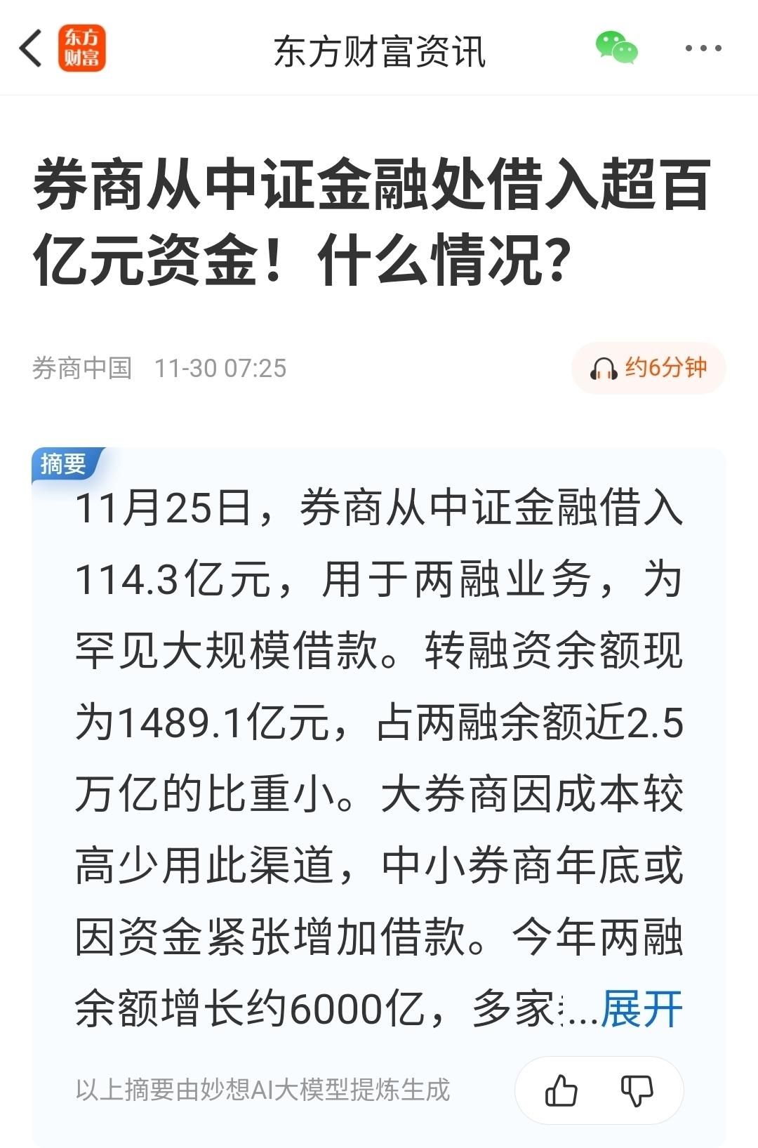 2. 上头在给市场“递定心丸”:平时券商从证金借的钱也就几亿,这次一下搞超百亿,明显反常。这不仅说明券商想多搞点钱做两融生意,更藏着政策层面的意思——就是想护着市场、让两融业务好好跑,给兄弟们传递“别慌,有支持”的信号,能让家人们心里更有底!