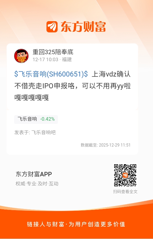 $飞乐音响(SH600651)$  上海vdz确认不借壳走IPO申报咯,可以不用再yy啦嘎嘎嘎嘎嘎