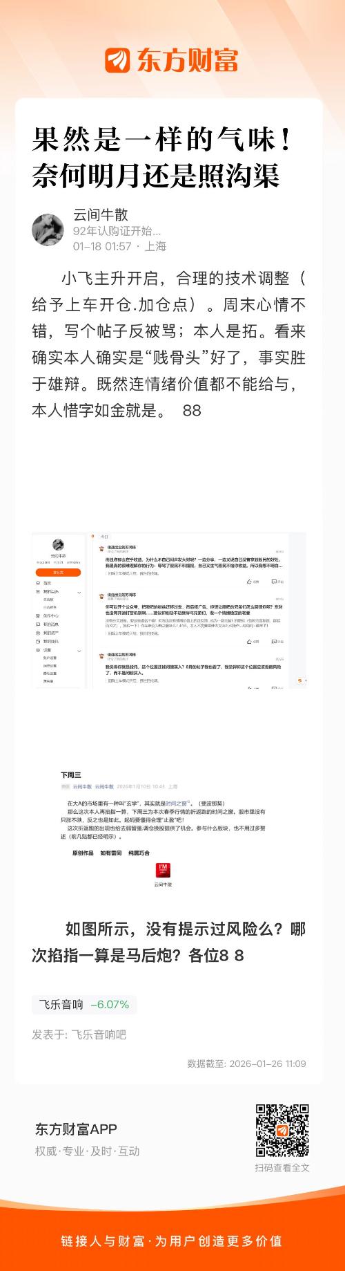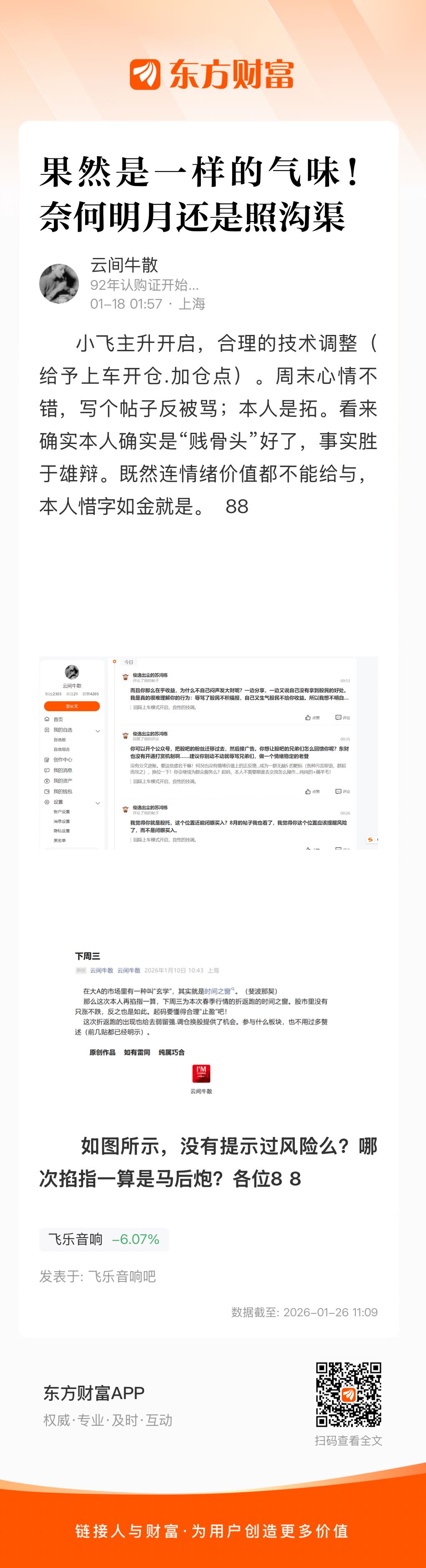 温馨提示: 1.根据《证券法》规定,禁止编造、传播虚假信息或者误导性信息,扰乱证券市场;2.用户在本社区发表的所有资料、言论等仅代表个人观点,与本网站立场无关,不对您构成任何投资建议。用户应基于自己的独立判断,自行决定证券投资并承担相应风险。《东方财富社区管理规定》