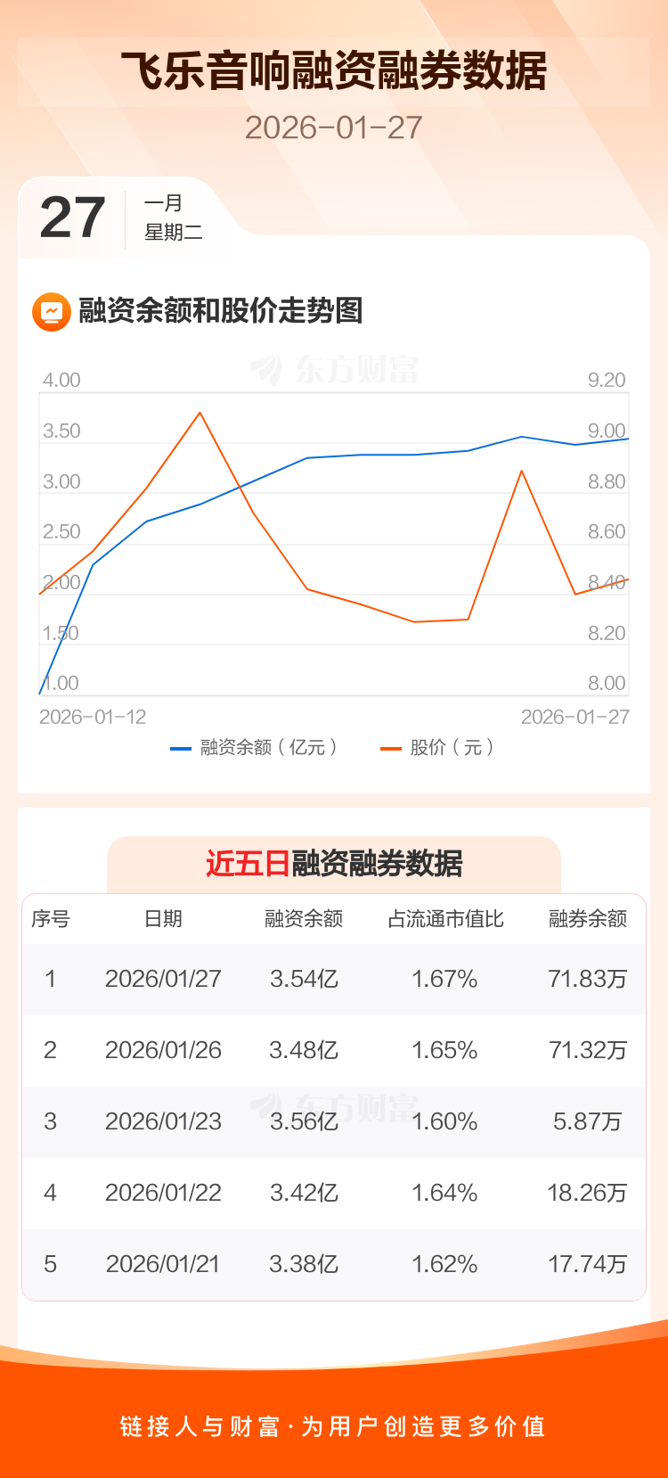 交易所最新数据显示,飞乐音响于2026年1月27日获融资买入3033.12万元,融资偿还2464.97万元,当日融资净买入568.15万元。目前,该股融资余额3.54亿,占流通市值比例为1.67%。