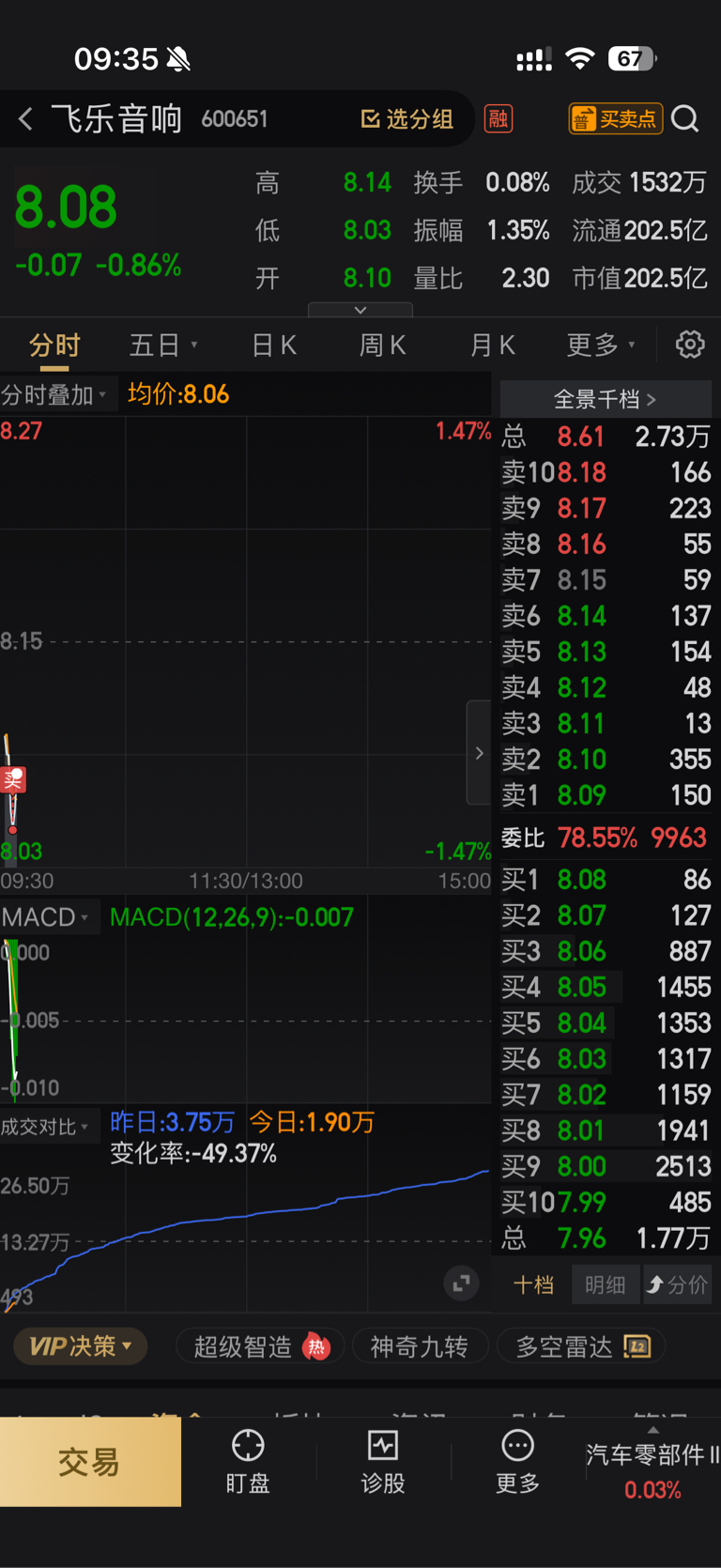 $飞乐音响(SH600651)$ 实在无聊 才发的帖 也是对飞 对大盘感觉无奈