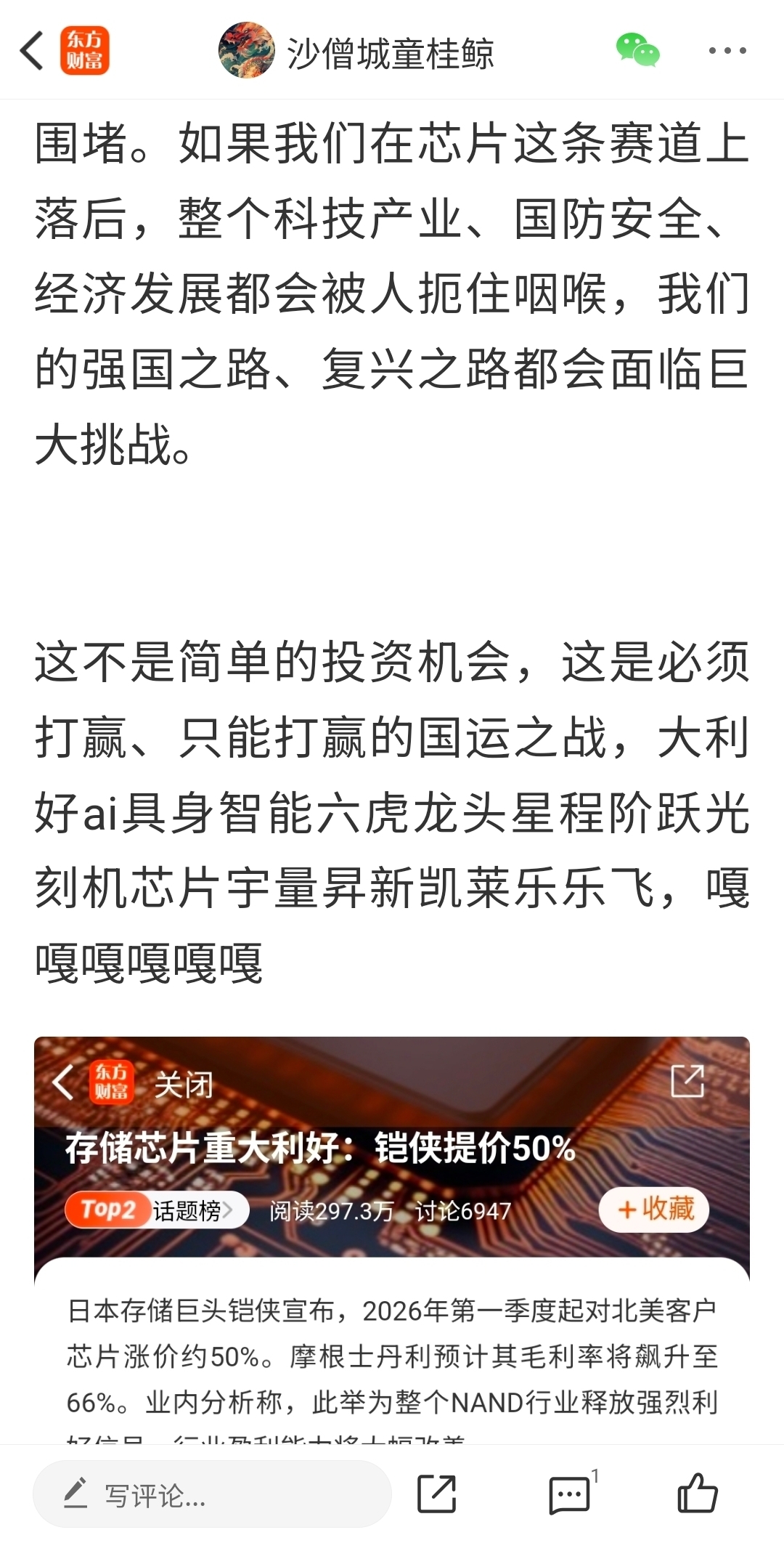温馨提示: 1.根据《证券法》规定,禁止编造、传播虚假信息或者误导性信息,扰乱证券市场;2.用户在本社区发表的所有资料、言论等仅代表个人观点,与本网站立场无关,不对您构成任何投资建议。用户应基于自己的独立判断,自行决定证券投资并承担相应风险。《东方财富社区管理规定》