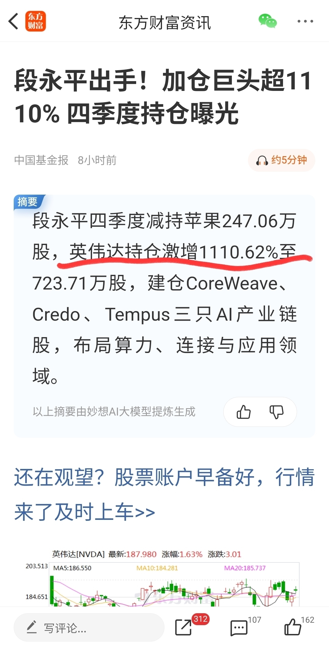 林园以前重仓茅台一战封神,段永平也是重仓芯片龙头英伟达,本尊学习林园段永平满仓满