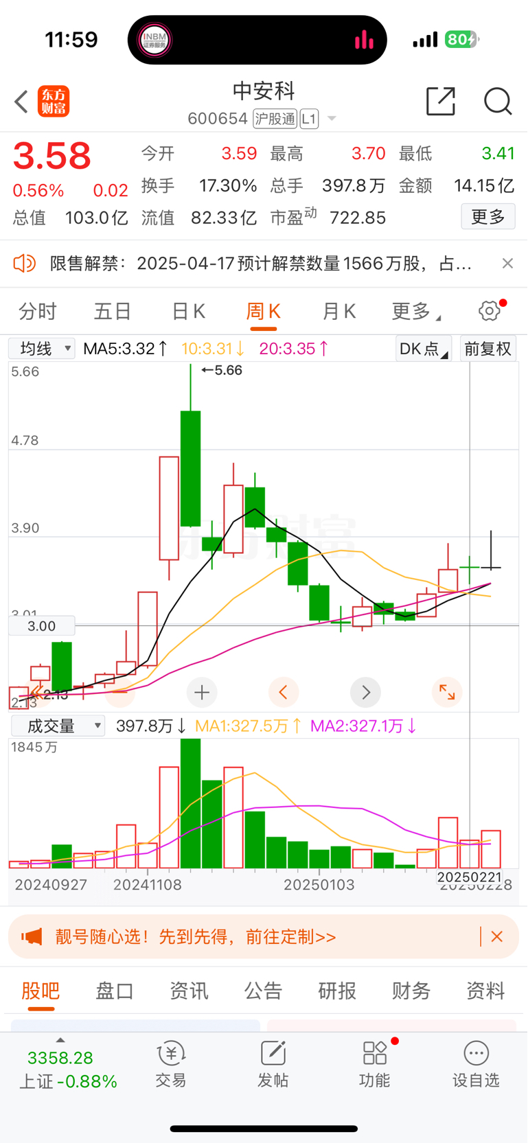$中安科(SH600654)$ 两个礼拜涨了两分