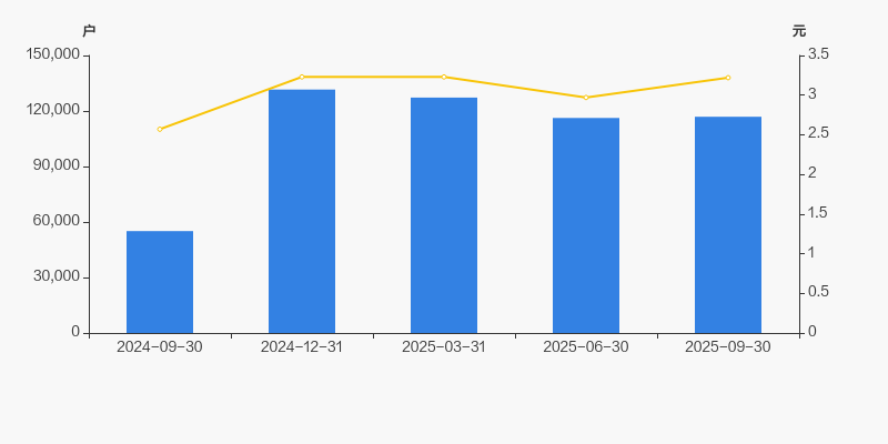 2024年9月30日至今,公司股东户数成倍增长,区间涨幅达112.19%。2024年9月30日至2025年9月30日区间股价上涨25.29%。