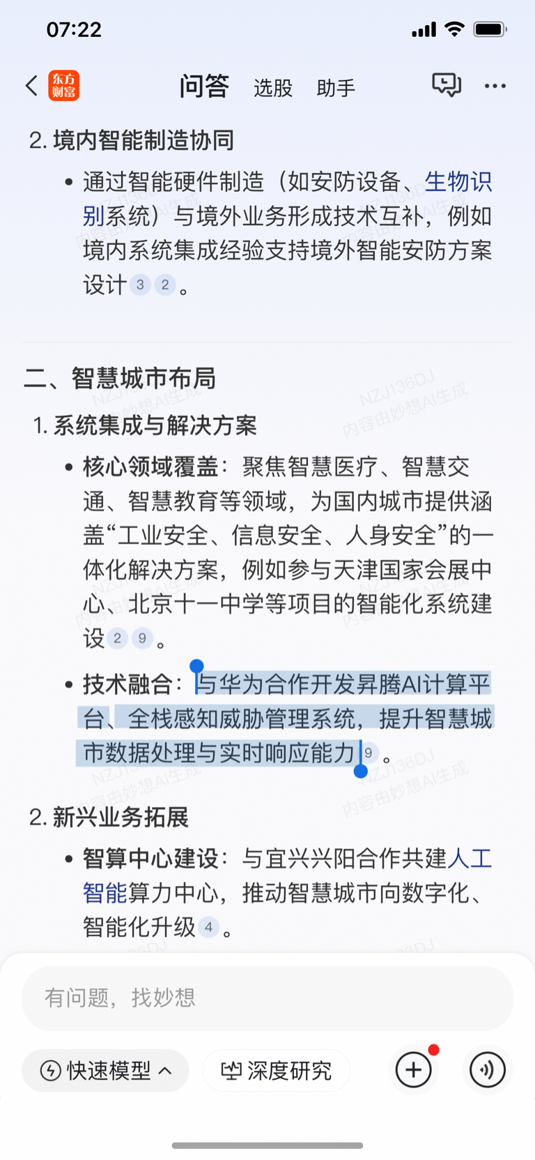 与华为合作开发昇腾A计算平台全栈感知威胁管理系统,提升智慧城市数据处理与实时响应能力