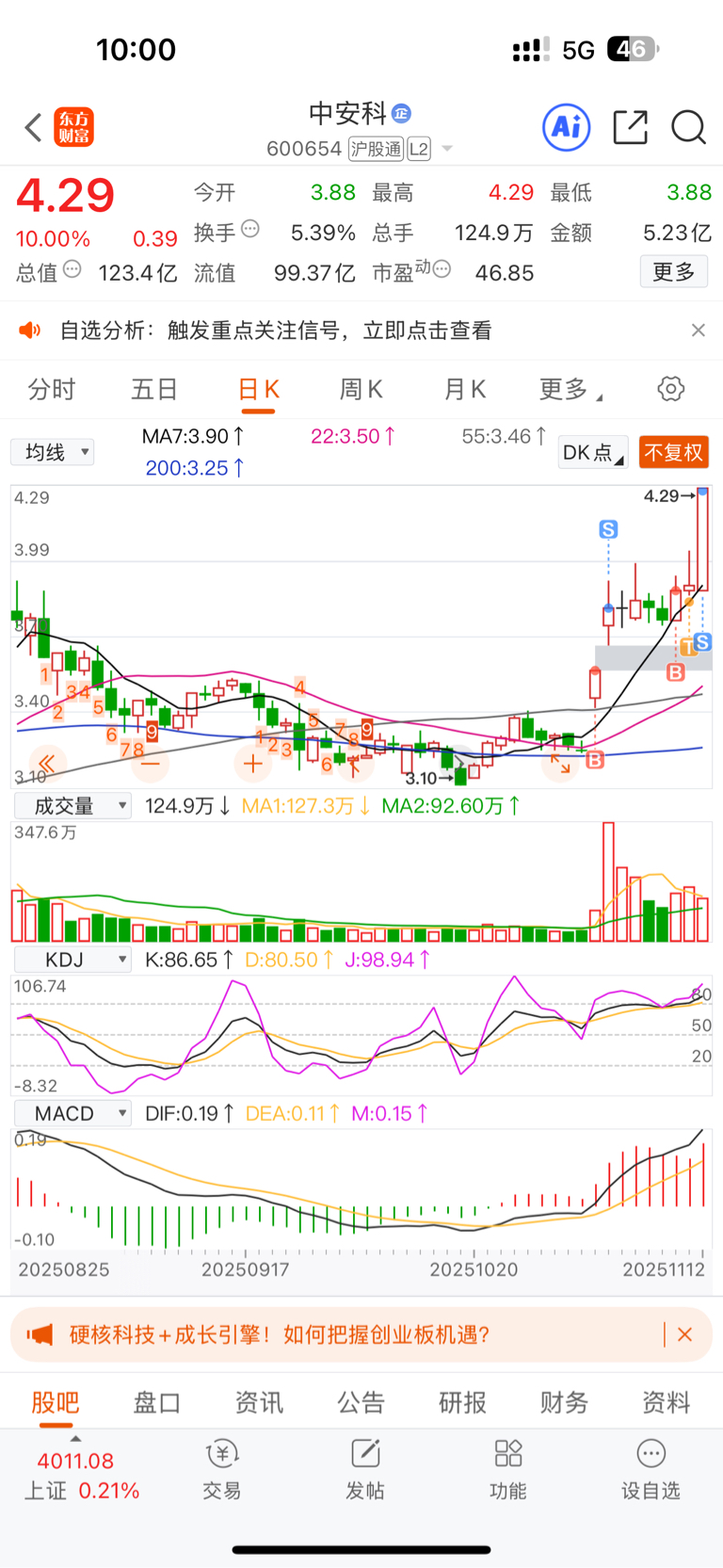 $中安科(SH600654)$ 昨天早盘加仓尾盘没忍住t了,但是短线纪律就是纪律