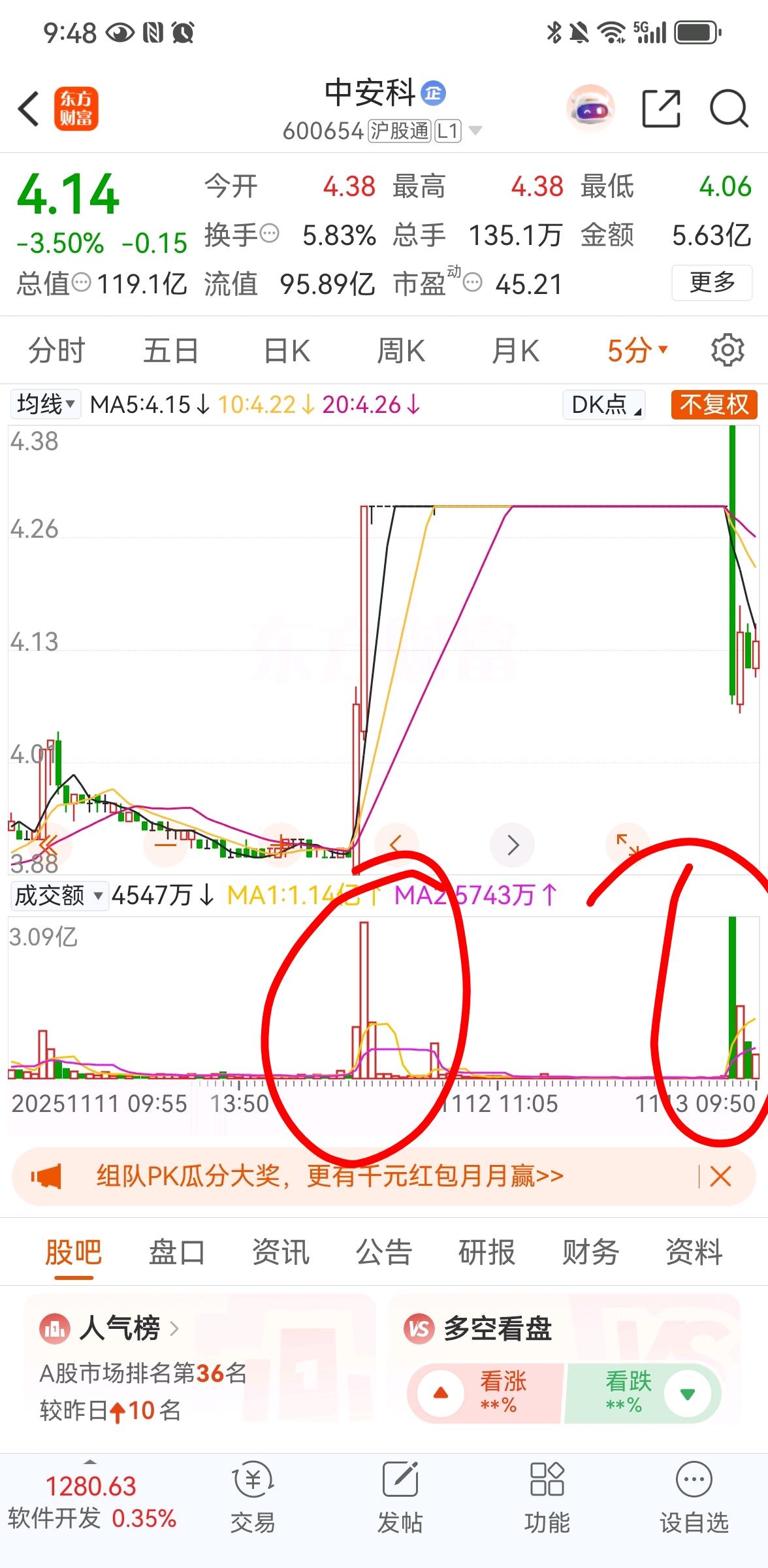 $中安科(SH600654)$ 昨天进的已经跑完了