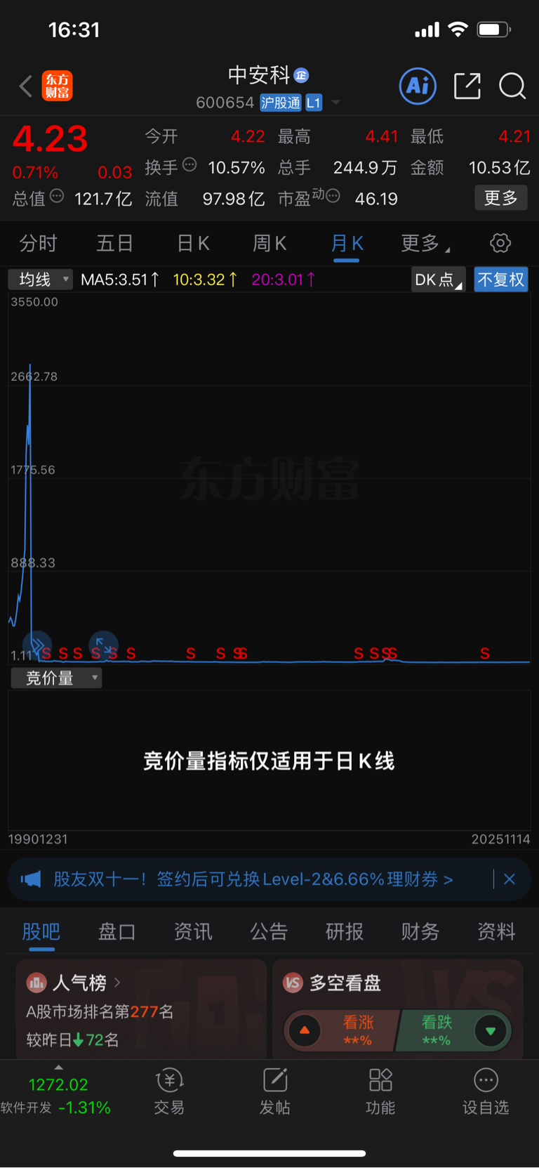 $中安科(SH600654)$ 这K线再找不到第二只